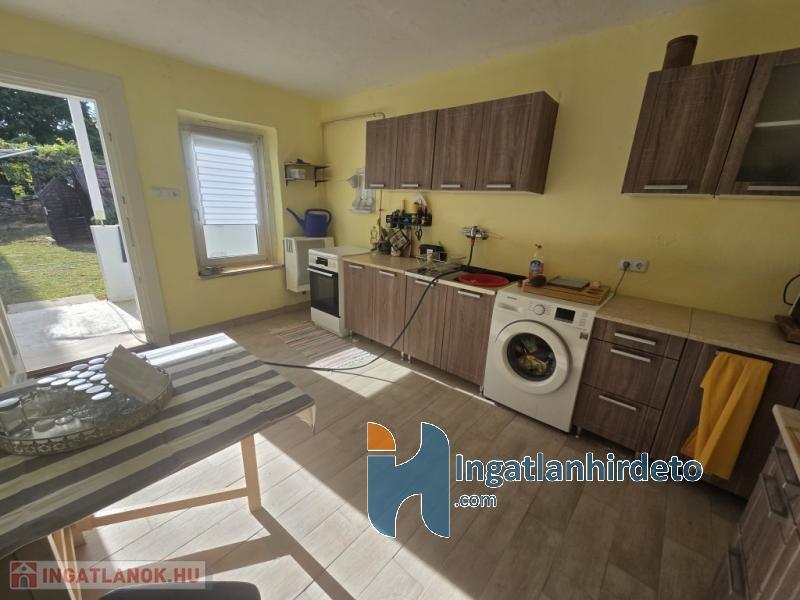 Elhelyezkedése: Belterület Tájolása: Dél-nyugai tájolású Állapota: Használt - felújított Komfort besorolása: összkomfortos Építési éve: 1930 Alapterülete: 76 m2 Telekterülete: 906 m2 Szobák száma: 2 + 1 szoba Felújított: Felújított Felújítás éve: 2022 Felújítás során elvégzett munkák: Festés, Villanyrendszer csere, Vízrendszer csere, Csempe csere, Járólap csere, Parketta csere, Fűrdőszobai szaniterek cseréje, Utólagos vízszigetelés, Tetőfelújítás, Tetőszigetelés, Nyílászárók cseréje, Hőszigetelt nyílászárók beépítése Közművek: Gáz, Víz, Villany, Csatorna Gázellátás: Vezetékes Vízellátás: Vezetékes víz Melegvíz-ellátás: Villanybojler Áramellátás: 230V/380 V Fűtés módja: Egyéb Fűtés típusa: Egyéb Homlokzat állapot: Jó Építési mód: Tégla, Kő, Vályog Tető formája: Magas Tető anyaga: Cserép Parkolási lehetőség: Telken Kilátás: Utcafronti kilátás Jellemzői: Csendes környék, Jó közlekedés, Redőny, Légkondicionáló, Udvari terasz, Kert, Kerítés, Zöldterület, Jó közbiztonság, Beépített tetőtér Energetikai besorolás: H Egyéb jellemzők: Terasz, Melléképület, Pince Tv, Internet: Kábeltévé, Internet Terhelések: Tehermentes ingatlan Eladásra vonatkozó információk: Az ár tartalmazza a teljes berendezést, Azonnal beköltözhető