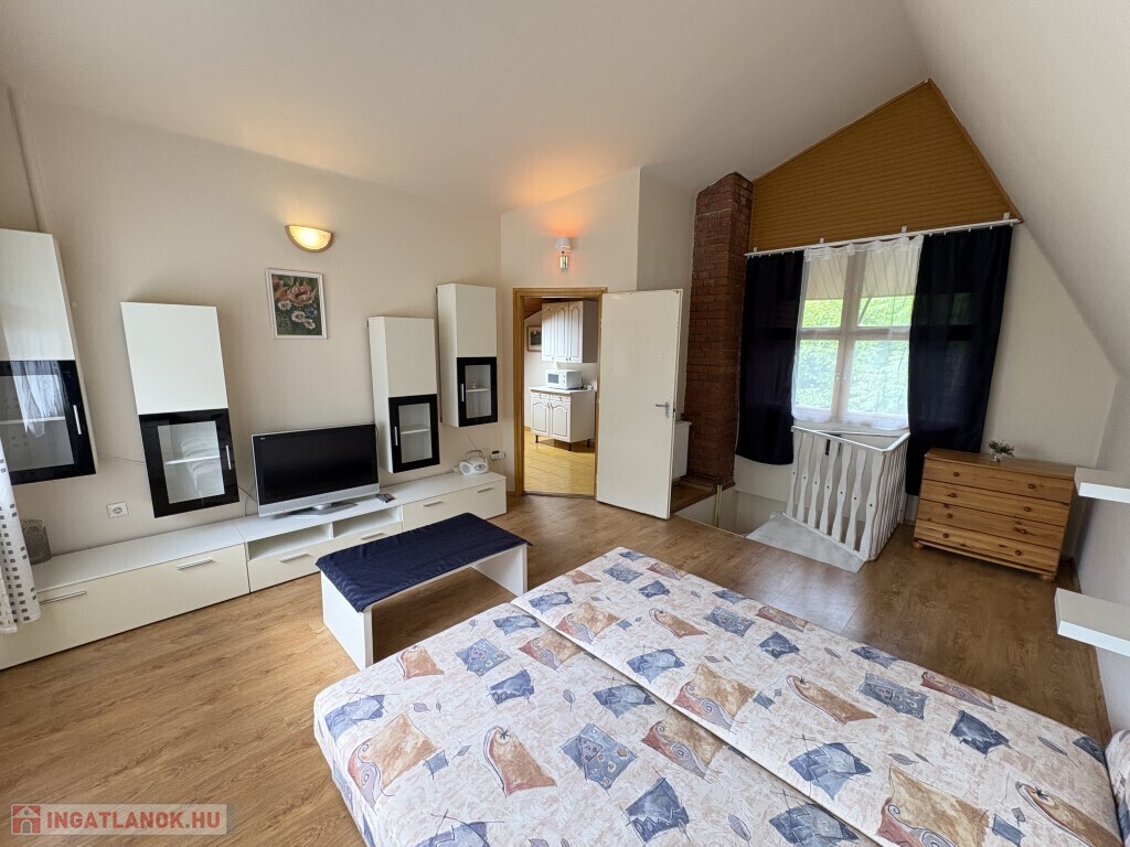 Fonyód egyik legértékesebb utcájában - a Bartók Béla utcában - 3 önálló lakásból álló, összesen 234 m2-es családi ház eladó. A földszinten előszoba-nappali-étkező-konyha, 2 szoba, közlekedő, gardrób, fürdőszoba, wc-kézmosó helyiségek találhatóak, valamint tartozik hozzá egy tároló-műhely is. A középső szinten található lakásba egy nagy teraszról lehet bejutni, itt előszoba-étkező-konyha, nappali, 2 szoba, fürdőszoba-wc és egy tároló helyiség került kialakításra. A lakóház tetőterében kialakított lakásba a feljárat a középső nagy teraszról teraszról nyílik, ebben a lakásban nappali, konyha-étkező-zuhanyzó-wc, valamint 1 szoba van. A lakások fűtése gázkazánnal megoldott, illetve a földszinti lakrészben egy kályha, míg a középső szinten található lakásban kandalló biztosítja kiegészítő fűtésként a meleget. Az ingatlan szezonban könnyen kiadható, az egyik különlegessége, hogy a középső szintről és a tetőtérből szép kilátás nyílik a Balatonra. Telek: 728 m2 Telek: 728 m2 (886)