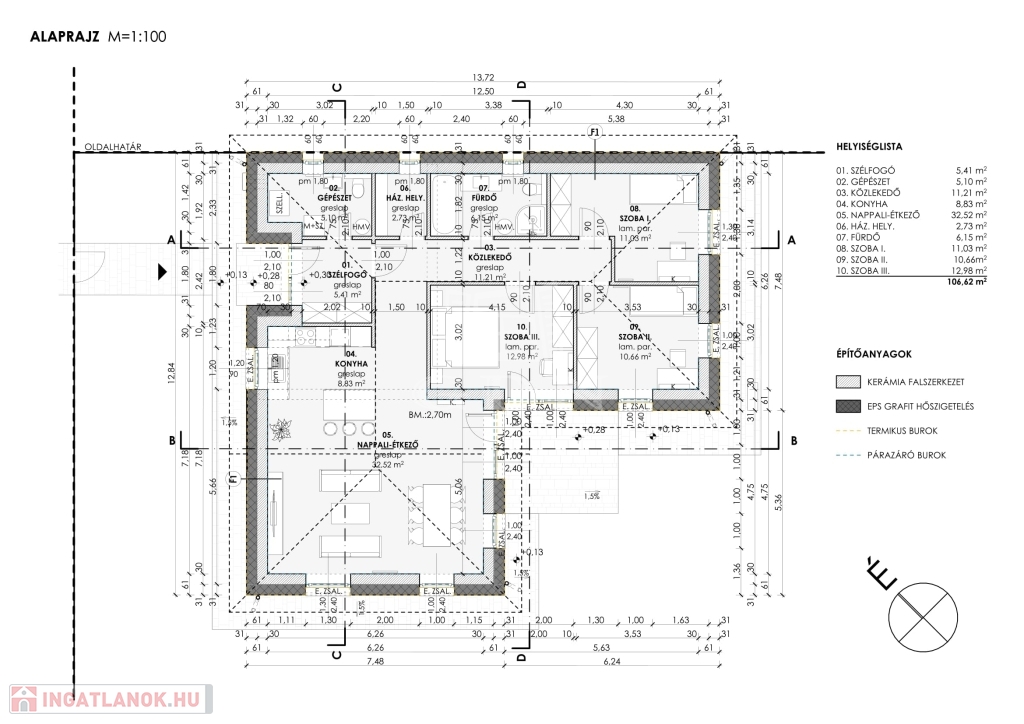 biztosítják a jó hő- és hangszigetelést. A tetőszerkezet szeglemezes kialakítású, betoncseréppel fedve, a külső homlokzat pedig színezve és szigetelve készül el.