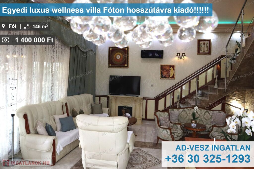 Fót nyugodt, csendes utcájában, luxus családi ház KIADÓ hosszú távra, medence, jacuzzi, szauna, és szolárium használattal. A wellness részleg közös használatú a szomszédban lakó tulajdonossal.