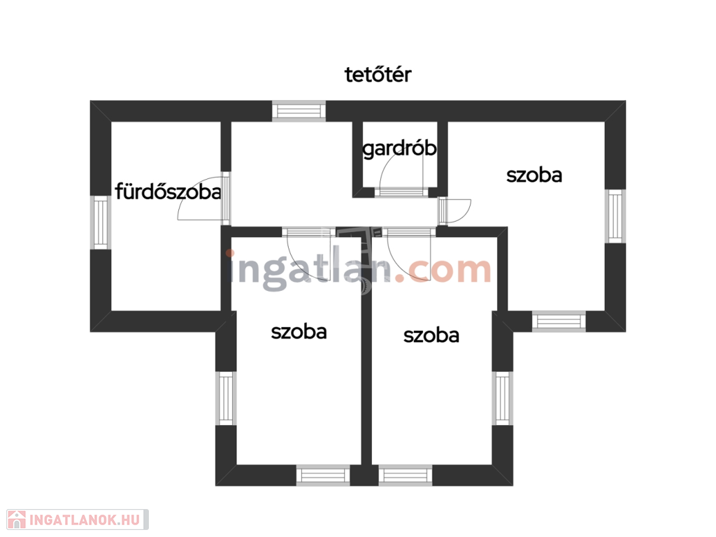 Tetőtér: két tágas hálószoba, egy félszoba, gardróbszoba,