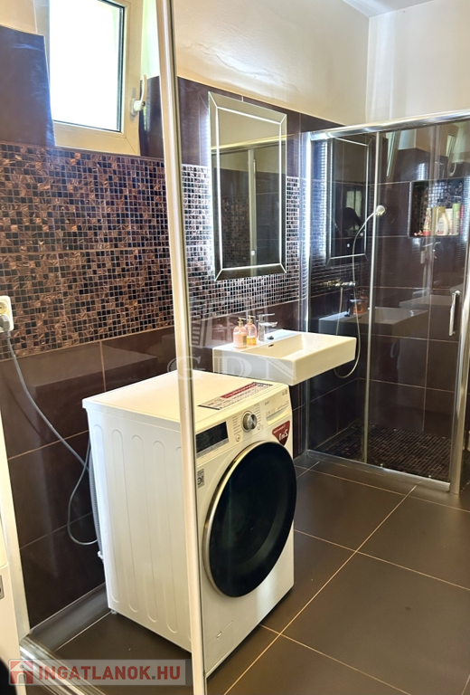 Extrák: riasztó, biztonsági kamera, távvezérlésű elektromos redőny a teraszhoz tartozó ajtókon. A műanyag nyílászárók szúnyoghálóval vannak ellátva. Elektromos nagykapu. Szauna, jakuzzi.