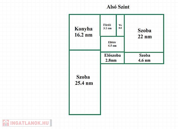 Elosztását tekintve a földszinten: 2 előszoba, 3 szoba, konyha, fürdőszoba és wc található. Az emeleten 1 előszoba és 4 szoba található.