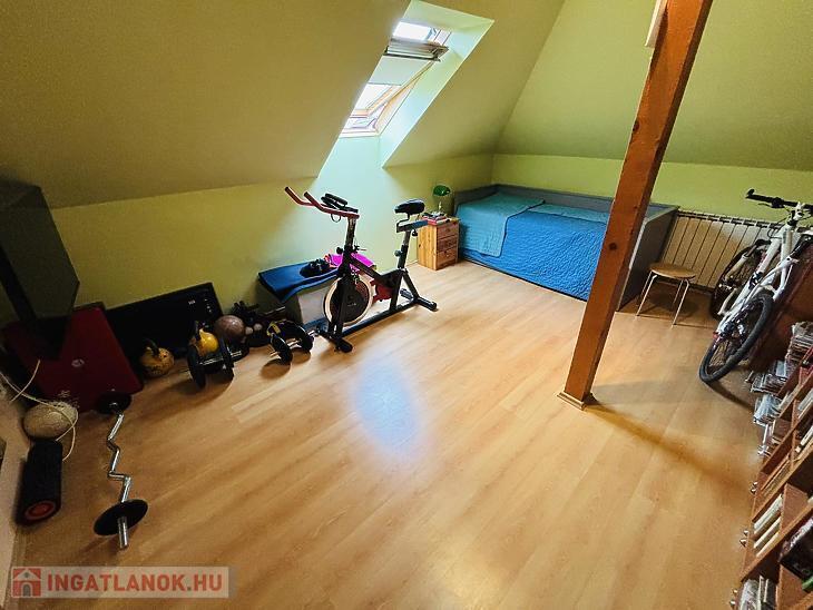 Az emeleten egy impozáns nappali várja az új tulajdonost – szükség esetén konyha kialakítására is adott a lehetőség –, emellett négy hálószoba, egy újabb fürdő, WC és egy praktikus gardróbhelyiség biztosítja a komfortot.
