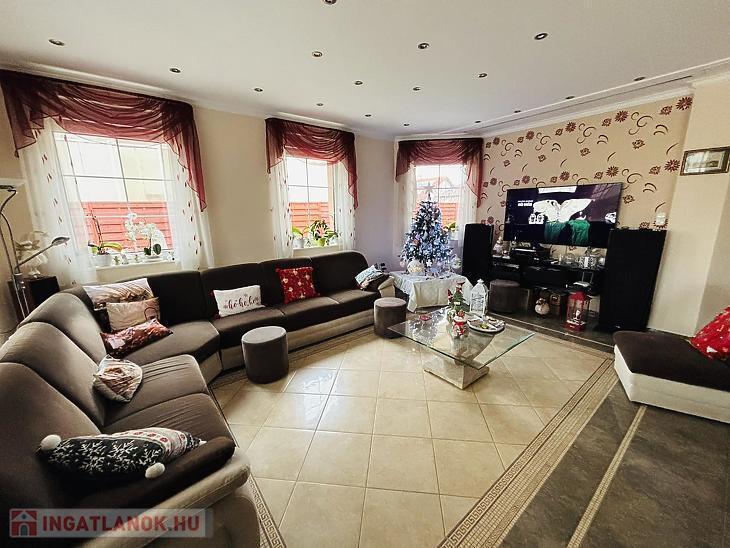Az ingatlan 38-as porotherm téglából épült, modern dryvit szigeteléssel, prémium minőségű, hőszigetelt műanyag nyílászárókkal felszerelve, beépített redőnyökkel. A házba lépve egy tágas, 45 m²-es amerikai konyhás nappali fogad, amelyben a falba rejtett házimozi rendszer és leereszthető projektorvászon teremt igazi mozis élményt. A földszinten két kényelmes hálószoba, fürdőszoba, WC, mosókonyha, előszoba és egy fűthető garázs kapott helyet.