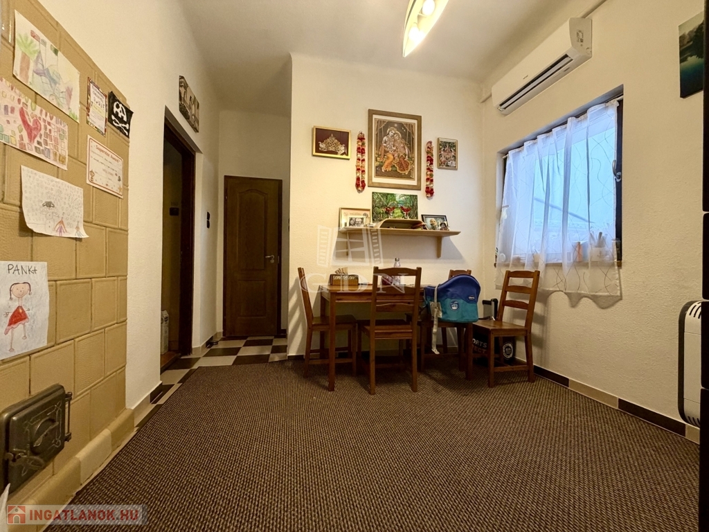 A nagyházban radiátoros (emeleten, és termosztátokkal kiegészítve), és gázkonvektoros hőleadással, ezen túl pedig egy cserépkályha is rendelkezsére áll, amely mind a konyhát, előteret, és a 2 szobát befűti, elhelyezkedéséből adódóan.