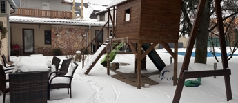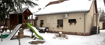 A gondozott nagy méretű kertben levő kerti búbos kemence, és a sütögető kiváló helyszíne a kikapcsolódásnak.