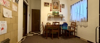 A kisházban radiátoros hőleadók vannak felszerelve, és külön gázcirkó biztosítja az ellátást.