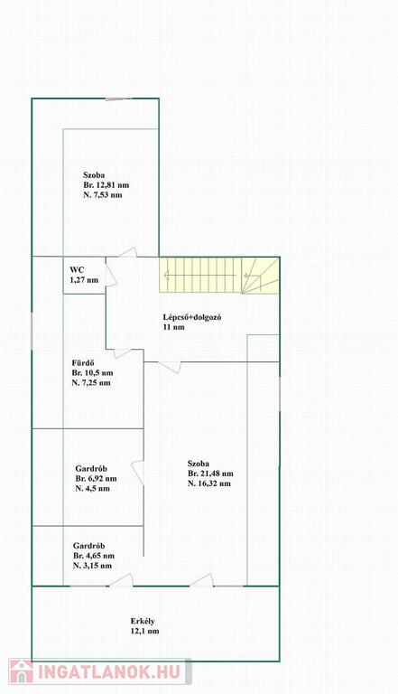 – egy nagyméretű hálószoba két gardróbbal és széles, jól kihasználható erkéllyel,