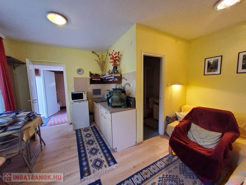 A kisebb lakrész 27,8 m2, áll egy konyha-étkező-nappaliból, zuhanyzós fürdőszoba -WC-ből és egy hálószobából. Déli fekvése, világos, napos helységei vidámságot tükröznek.