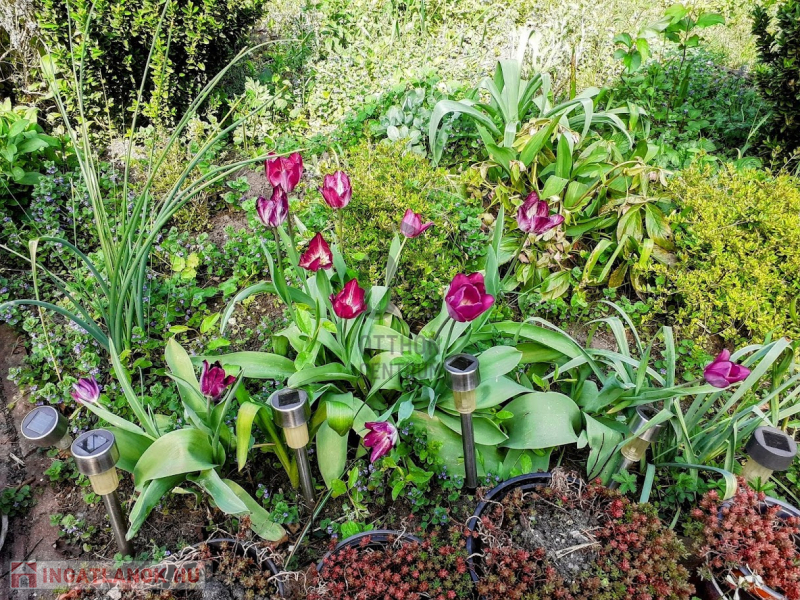 A sok gondoskodással művelt kert fúrt kútról van öntözve. Rengeteg dísznövény és gyümölcsfa található. Magas ágyásokban konyhakerti növények zöldellnek.