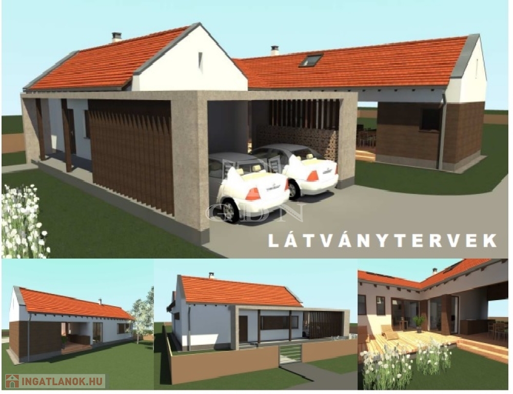 A parkosított, összközműves telek 1265 nm, ahol helyet kapott egy 20nm-es tároló és egy 10 nm-es fatároló.
