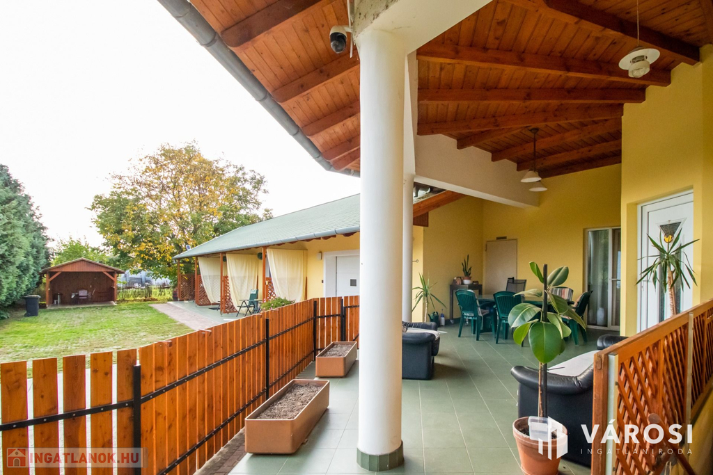 A ház, egy agárdi viszonylatban nagynak számító 947 négyzetméteres telken fekszik, ami nagyon szépen rendezett. Saját fúrt kút biztosítja az öntözéshez a vizet. Az udvar helyet tud biztosítani kerti partiknak vagy a család kedvenceinek, akik kedvükre szaladgálhatnak majd rajta, de akár egy medence is elfér még a ház mellett.