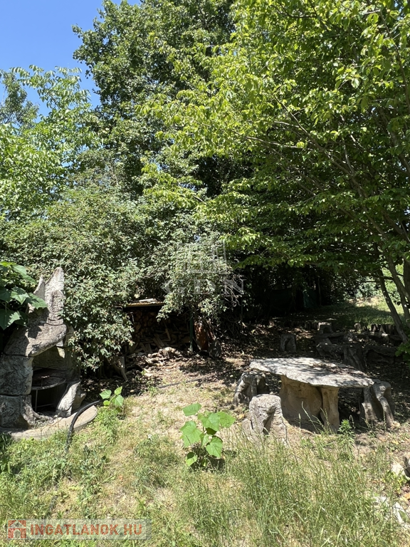 A kert különleges ékköve: egy ~70 m²-es nádfedeles nyári lak (2 szoba + tárolók + zuhanyzó + wc + műhely + pince), saját játszótérrel, kerti sütögetővel és öntözőrendszerrel (fúrt kútból működik).