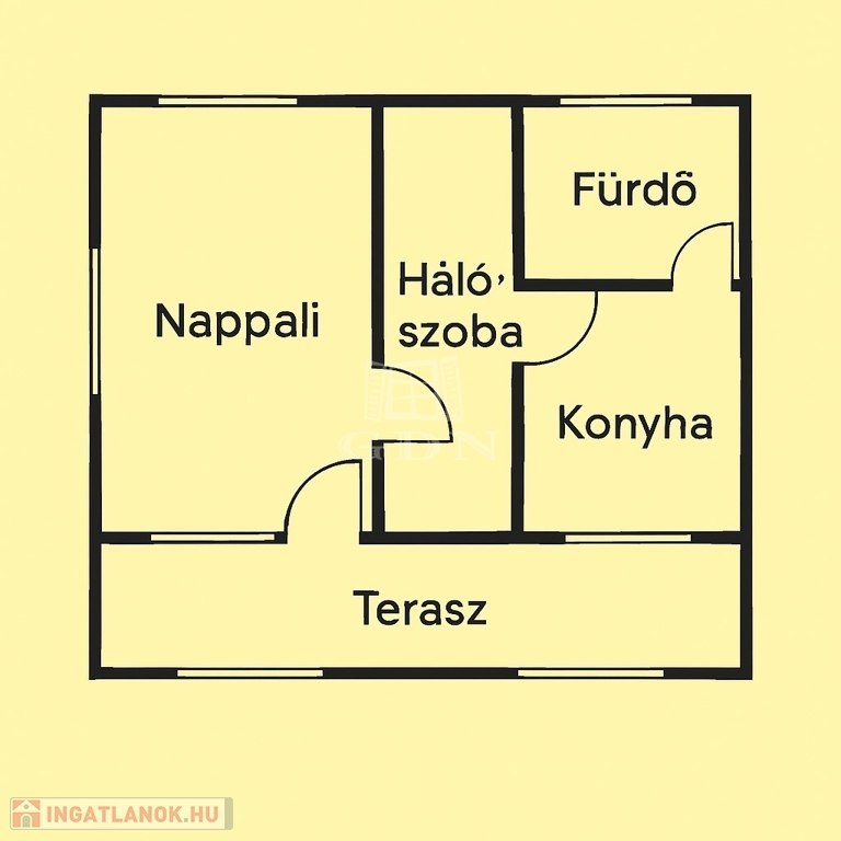 A ház 31nm, egy nappalival, hálószobával és fürdőszobával rendelkezik.