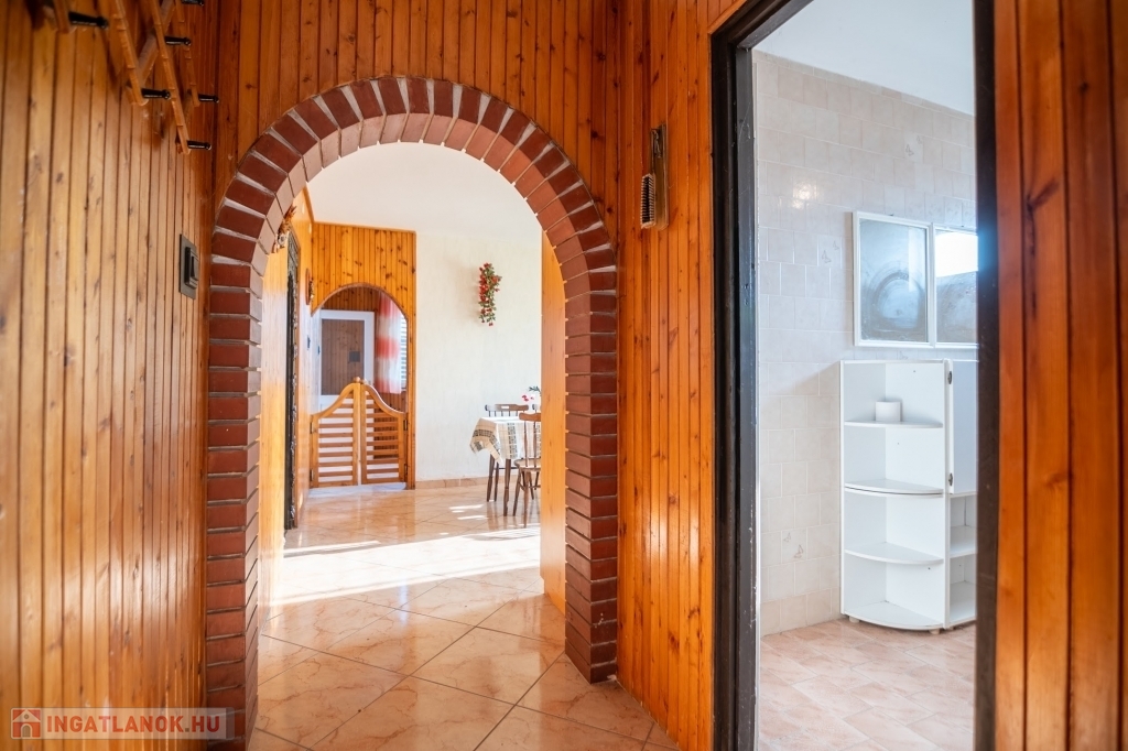 - földszinten: nappali, konyha, étkező, hálószoba, fürdő, külön WC, nagy terasz