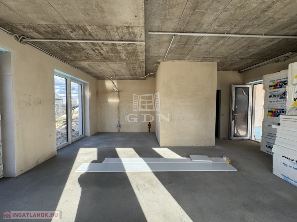 A társasház összesen 12 lakásból és 4 üzlethelyiségből áll – tervezett műszaki átadás: 2026. szeptember.
