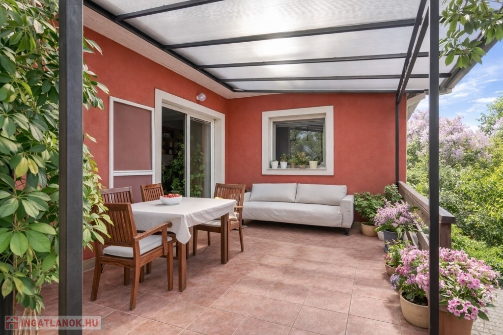 Gárdony egyik hangulatos, festői utcájában, nyugodt kertvárosi környezetben kínálunk megvételre egy 150 m²-es, 5 szobás, kétgenerációs családi házat, amely kiváló választás nagyobb családoknak, összeköltözőknek vagy akár otthoni munkavégzéshez is. A gondosan karbantartott, növényekkel gazdagon beültetett kert, a több terasz és a praktikus elrendezés valódi otthonérzést biztosít.