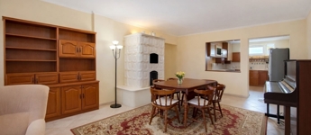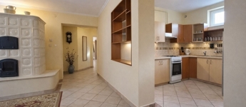 A nappali igazi ékköve egy gyönyörű cserépkályha, amely a téli estéken különleges hangulatot és kellemes meleget biztosít.