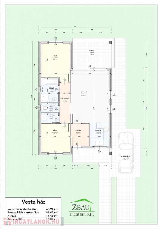 A hirdetésben szereplő ingatlan a Vesta1 típusház. A Vesta1 ház ára a kulcsrakész állapot alapján került kiszámításra.