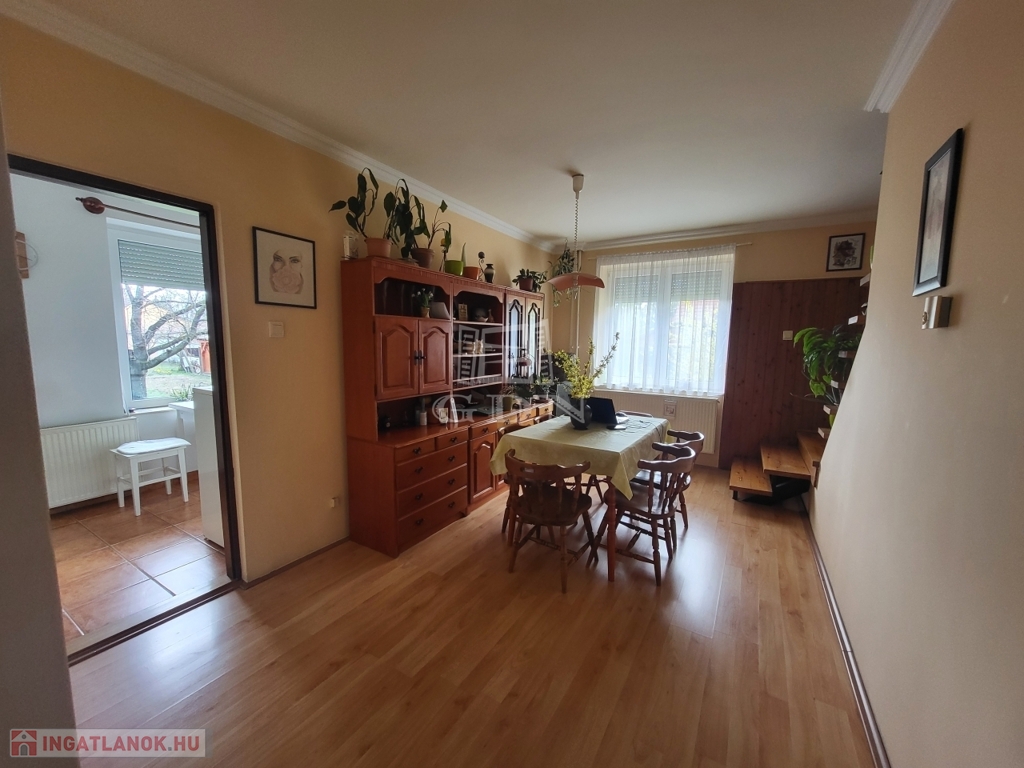 Gencsapáti, csendes átmenő forgalomtól mentes utcájában eladó családi ház. A jó adottságokkal rendelkező ingatlan 1986-ban épült, 2013-ban esztétikai felújításon esett át. A ház hőszigetelt ablakai redőnyökkel felszereltek. Fűtéséről gázkazánon kívül, vegyestüzelésű kazán gondoskodik. Nappalijában hűtő-fűtő klímát szereltek. A burkolatok megújultak. Az ingatlan alápincézett, a tetőtér beépített. Nappali+ négy szobás, dupla komfortos, fürdőszobái felújítottak. Konyhájához kamra csatlakozik. Az étkezőt külön tágas helyiségben alakították ki. A ház alatt garázs található. Kertjéhez nagy terasszal kapcsolódik. Az udvaron külön tároló kapott helyet. A község rendkívül jó infrastruktúrával rendelkezik, Szombathely Járás egyik legdinamikusabban fejlődő települése. Gencsapátiban van bölcsőde, óvoda és iskola is. Tömegközlekedése kiváló, vasúti megállókkal is érintett.