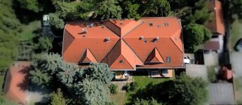 Az 1930-as években épült villaépület egy hangulatos, gondozott 2200 nm-es saroktelken található. A telekre két székelykapun keresztül jutunk be, a gépkocsik számára készült kapu távirányítású! A fákkal körbevett ház kívülről eredeti formáját megőrizte, belül viszont három önálló lakásra osztott. Ebből kettő egymás felett van, a harmadik pedig egy belső kétszintes lakás. A két lakás különbejáratú, de egy belső lépcső is összeköti őket, továbbá közös kerten, és két fedett gépkocsi-beállón osztoznak!