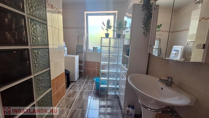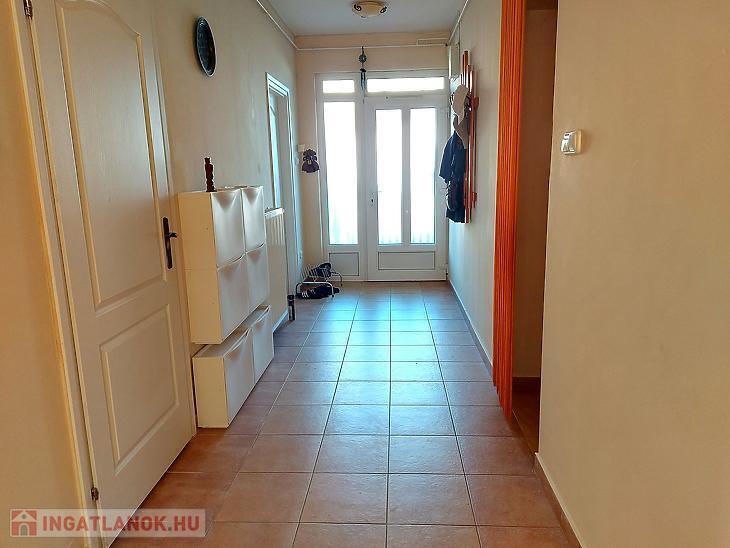 A hálószobák laminált parkettásak, a többi helyiség járólappal burkolt, a nyílászárók pedig műanyag termo üvegesek.