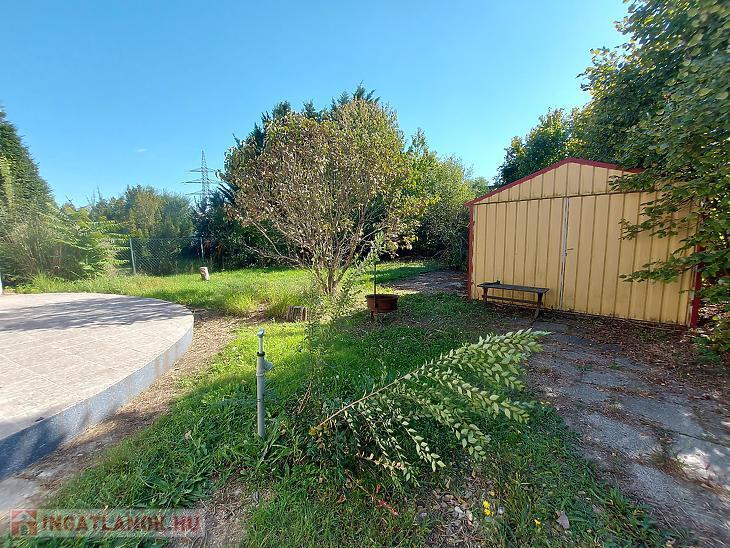 A lakáshoz tartozik egy könnyűszerkezetes garázs, egy gépkocsibeálló, valamint egy fúrt kút is.