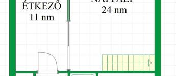 A lakáshoz 100 m²-es kertkapcsolat tartozik, amin megtalálható egy 35 nm-es garázs.