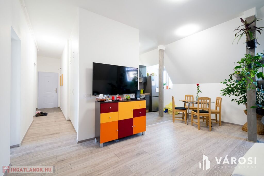 A lakást egy tetőtérbeépítés során 2024-25 között alakították ki, így minden újszerű benne. Új burkolatokat, új nyílászárókat kapott, új az elektromos és víz, gáz hálózat, valamint új kondenzációs gázkazánt építettek be.