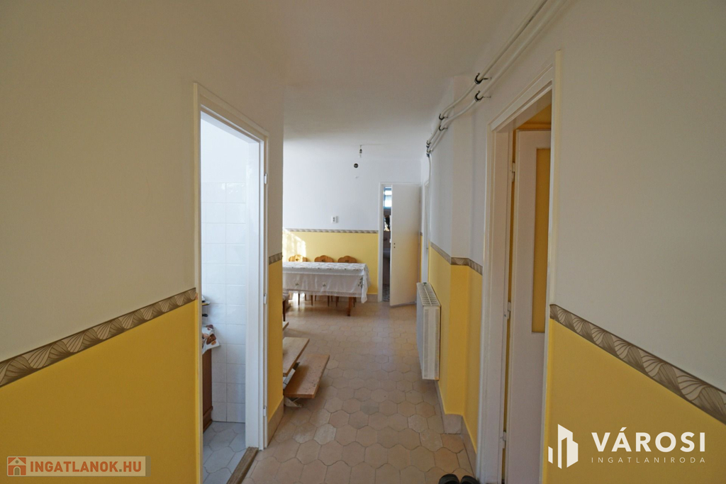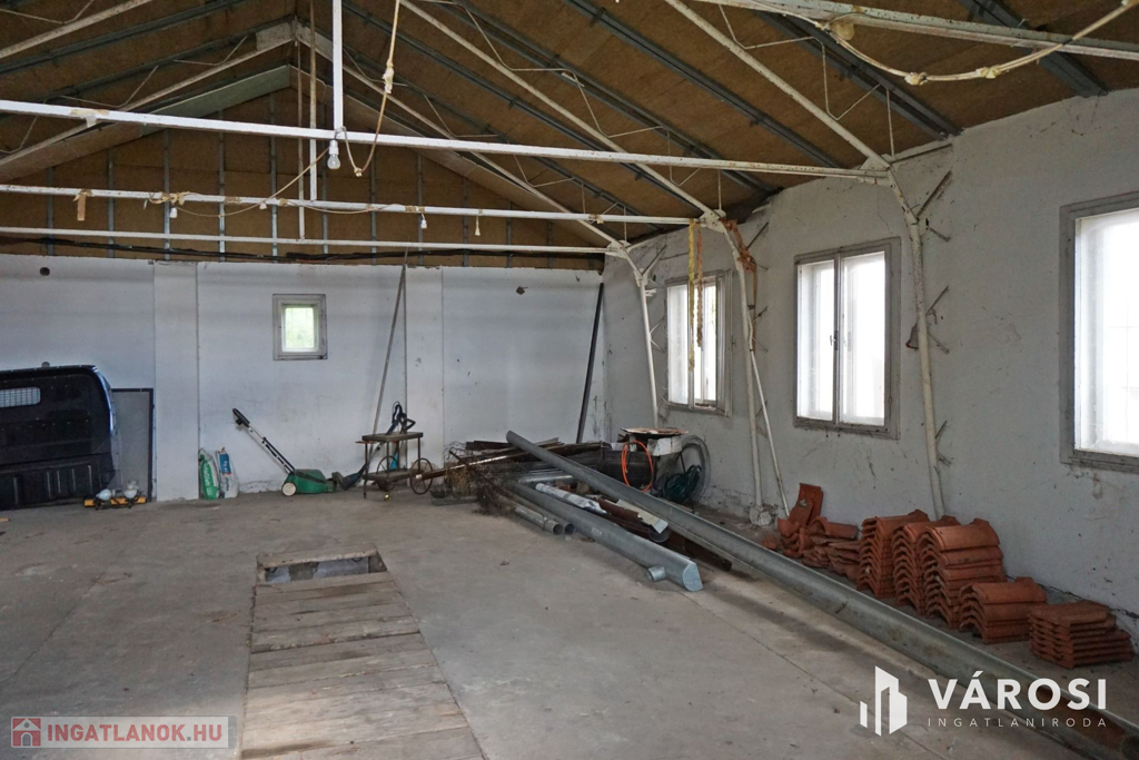 160 m2-es családi ház, 70 m2 pincével, 60 m2-es melléképülettel.