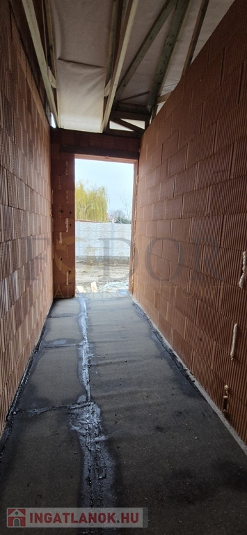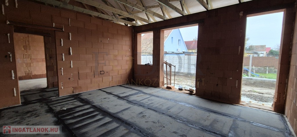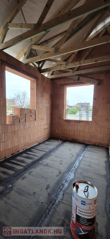 Az első, utcafronti ingatlan 104,9 millió forintos áron elérhető. A nettó lakótér 79,51 négyzetméter, amelyhez egy 17,67 négyzetméteres garázs, valamint egy 4,8 négyzetméteres terasz kapcsolódik. A 278 négyzetméteres telken épült házban két hálószoba és egy világos, tágas nappali található, a fürdőszoba és a WC külön helyiségben kapott helyet. A modern, energiatakarékos hőszivattyús fűtés padlófűtéssel kombinálva biztosítja az otthon melegét. A tetőtér nem beépíthető, így a földszintes kialakítás egyszerű, akadálymentes életteret kínál. A riasztórendszer kiépítéséhez minden előkészület megtörtént, a parkolás pedig az utcán ingyenesen megoldható.