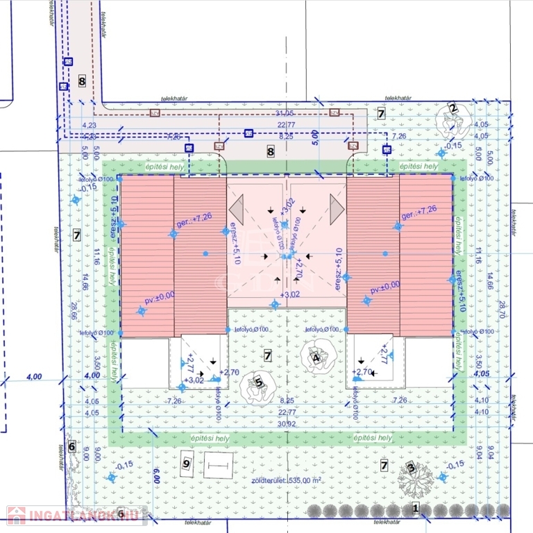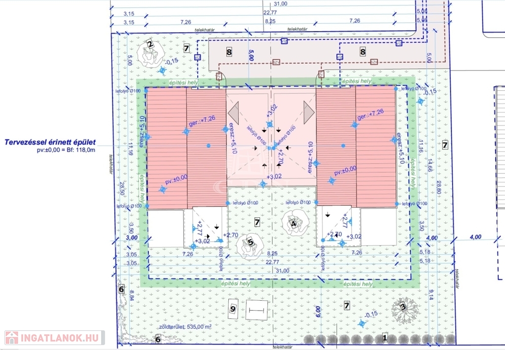 Igény szerint komplett engedélyeztetett tervekkel 2 db. ikerház megépítésére, összesen 4 db. lakásra!