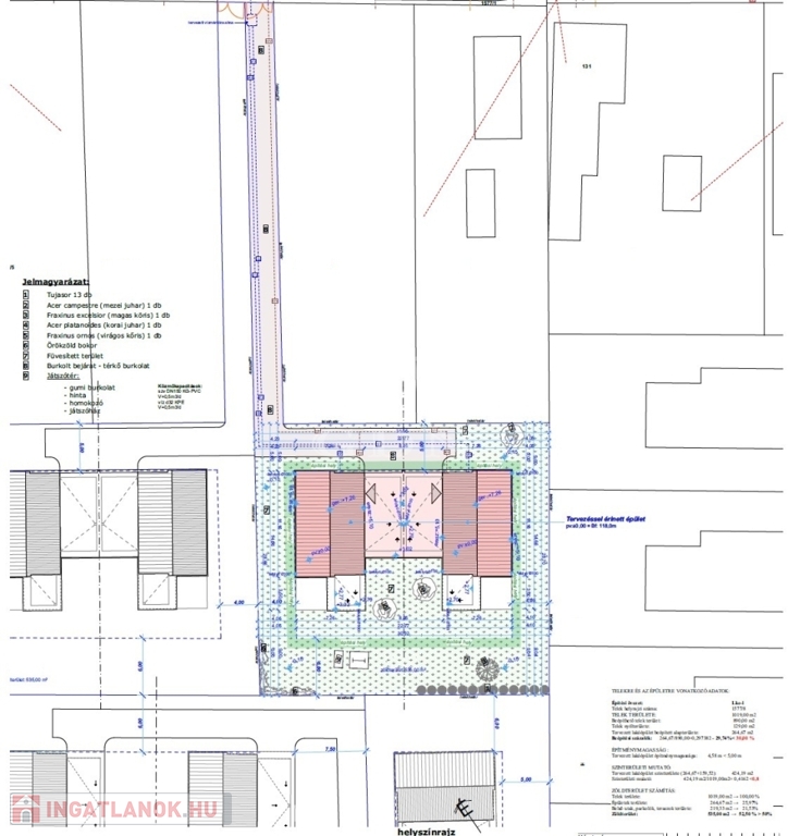 Tervezett lakóépület beépített alapterülete: 264,67 m2