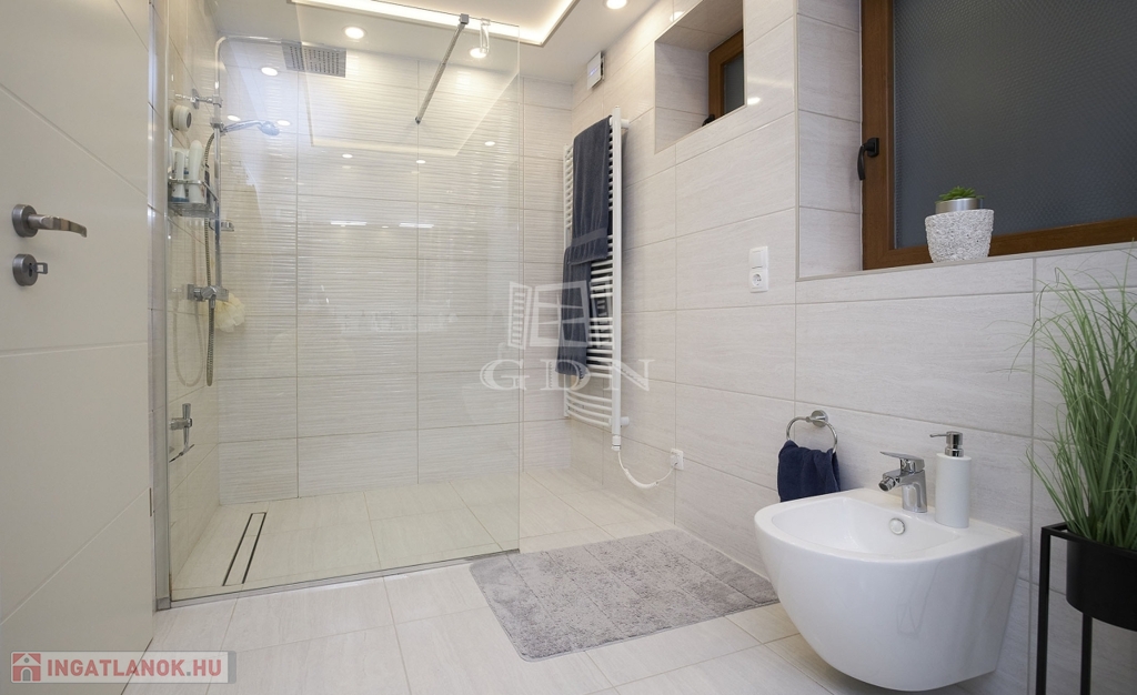 Az ingatlan kétszintes, részben alápincézett. Telken található egy 35m2-es dupla garázs, melyben az elektromos autótöltő kiépített.