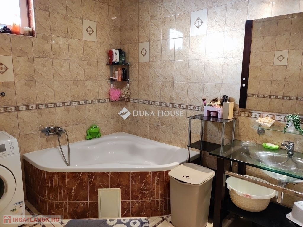 Eladó Gyömrőn egy bruttó 170 nm-es nappali + négy szobás, kiváló állapotban lévő, nagyon jó elrendezésű, kétszintes családi ház, 455nm-es rendezett telken.Telek:455 nm-es, külön helyrajzi számon lévő, rendezett, összközműves. Szépen rendezett kerttel rendelkezik, kerti kúttal, amely gazdaságos megoldást nyújt a kert öntözéséhez.A térkövezett udvarból, egy nagy teraszon át jutunk be az ingatlanba.Zárható garázs.Diófa árnyékában, kellemes grillező, bográcsozó hely lett kialakítva.Parkolás:Az épülethez tartozik egy garázs. Illetve a ház mellé további 2 autónak van még hely.Finanszírozás:Az ingatlan teljesen tehermentes, így akár banki támogatással is megvásárolható.Épület:Belépés után az előszobában találjuk magunkat, jobbra egy dolgozó szoba található, balra elhaladva a nagyjából 19 nm-es konyha-étkezőbe érkezünk. Az étkező mellett található a nappali. A konyha mellet található a kamra, illetve az emeletre a feljáró. A feljáró mellett található még a fürdőszoba és egy külön WC.A felső szintre jutva két hálószoba, egy fürdőszoba WC-vel, és további egy szoba található.Műszaki:Az ingatlan 2006-ben épült.15 cm szigeteléssel található a házon.Redőnyös műanyag ablakokat kapott a ház.2025 januárjában ki lett cserélve a kazán. (3év garancia van rajta.)A fűtést radiátorok adja. A villanyvezeték rézvezetékek.Környék:A Gyömrői-tó mindössze 10 perc sétára található, amely kellemes környezetet biztosít a sétákhoz és a szabadidős tevékenységekhez.A környéken megtalálhatók a mindennapi élethez szükséges boltok, gyógyszertárak, óvodák és iskolák.A vasútállomás és a helyi, valamint távolsági buszközlekedés rövid sétatávolságra található, így Budapest és a környező települések is gyorsan megközelíthetőek. Gépjárművel az M4,és az M0 autóút gyorsan elérhető.Érdeklődni a hét bármely napján lehet, ha kérdése van, vagy szeretne időpontot egyeztetni, Forduljon hozzám Bizalommal!