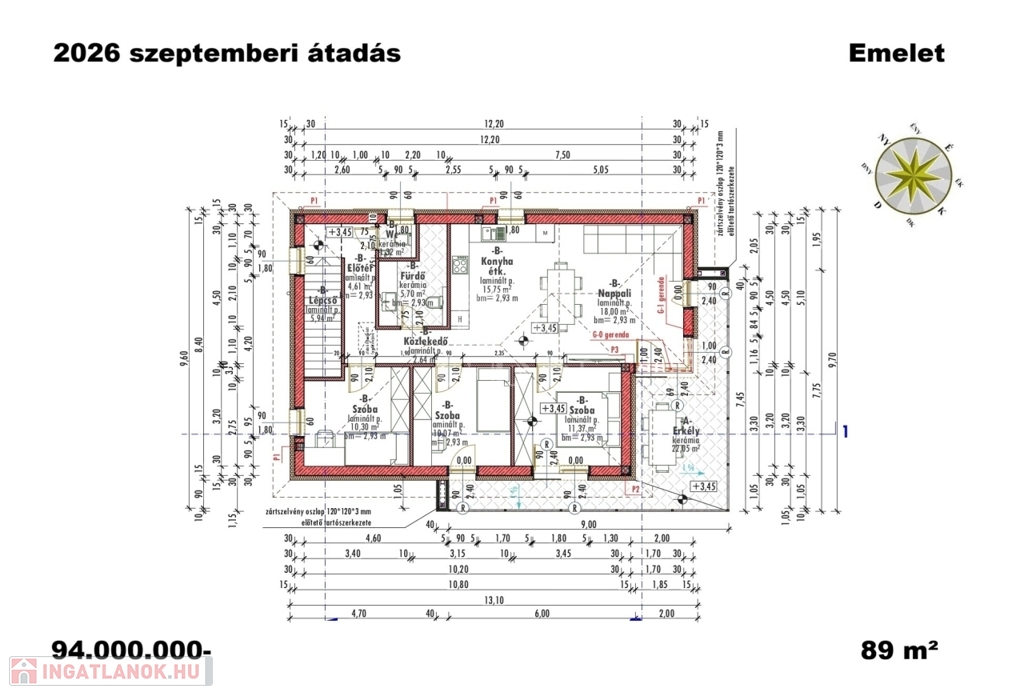 - Tágas, amerikai konyhás nappaliból nyílik a 22 nm-es, L alakban körbejárható ERKÉLY