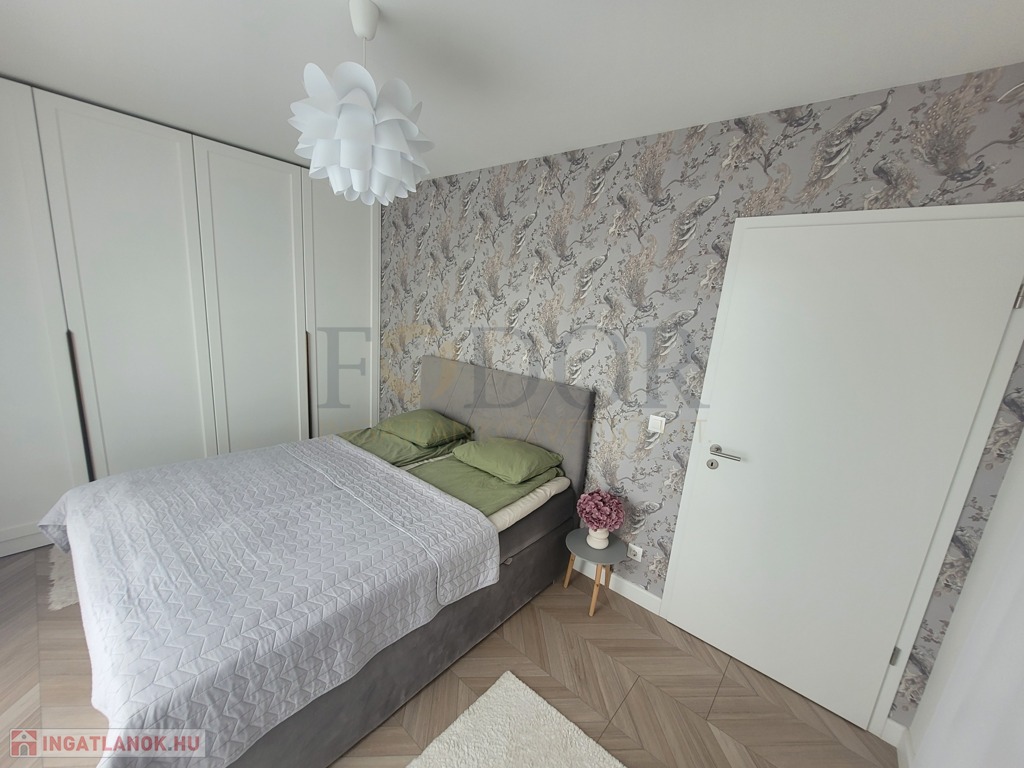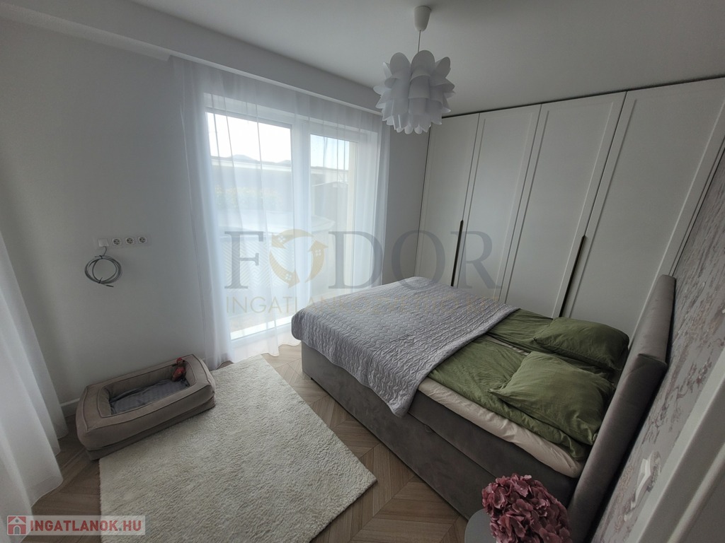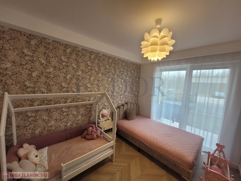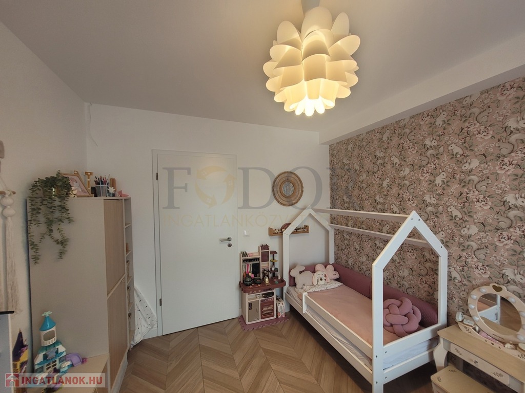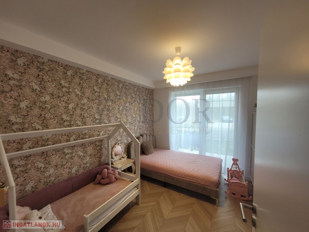 A lakáshoz 2 autó számára kényelmes, fedett parkoló és egy tároló is tartozik, amelyek az árban benne vannak. A vételár a gyerekszobában lévő bútorokon kívül tartalmazza a teljes berendezést, beleértve az igényes, minőségi konyhabútort, a beépített sütőt, főzőlapot, mosogatógépet és az előszobabútort.