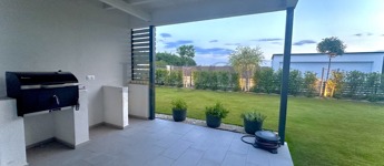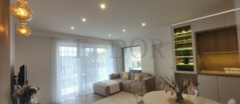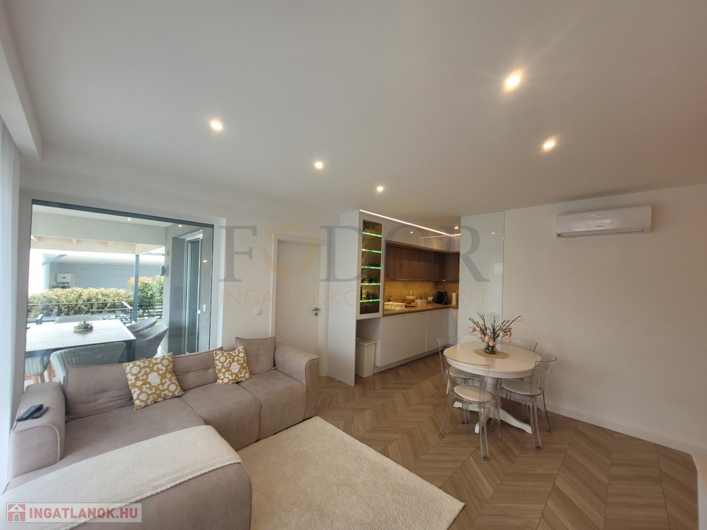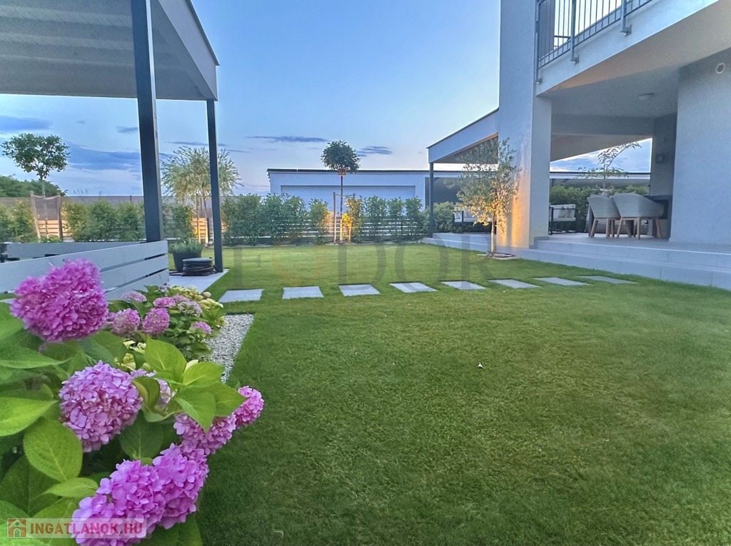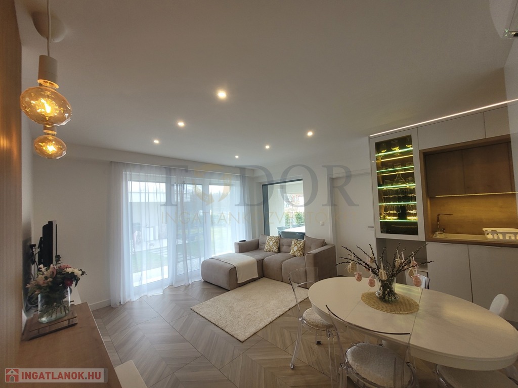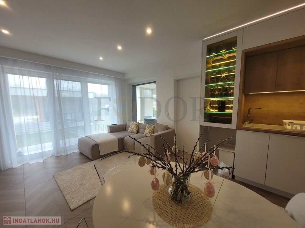 A 251 m²-es saját, leválasztott kertje az egyedi öntözőrendszer és robotfűnyíró segítségével valódi zöld oázis lesz, ahol a természet közelségét élvezheti. A nappaliban található prémium 3.2 kW-os Polar inverteres klíma kényelmet biztosít bármely évszakban.