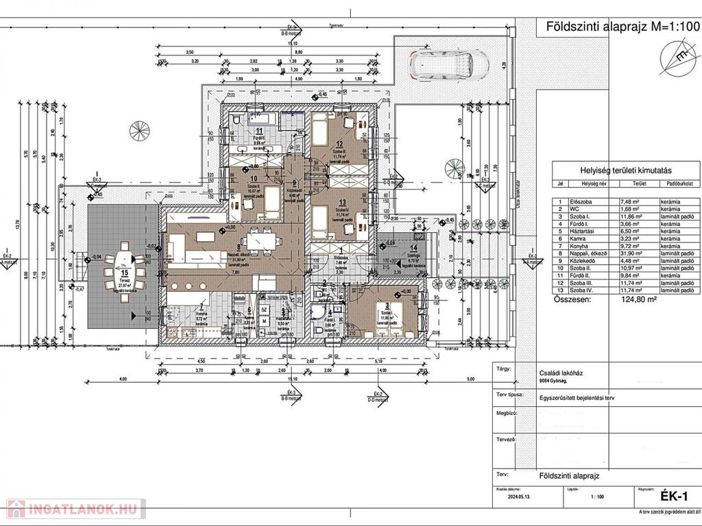 A házhoz tartozik egy 27,97 m2-es épített TERASZ is, ami igény esetén befedhető.