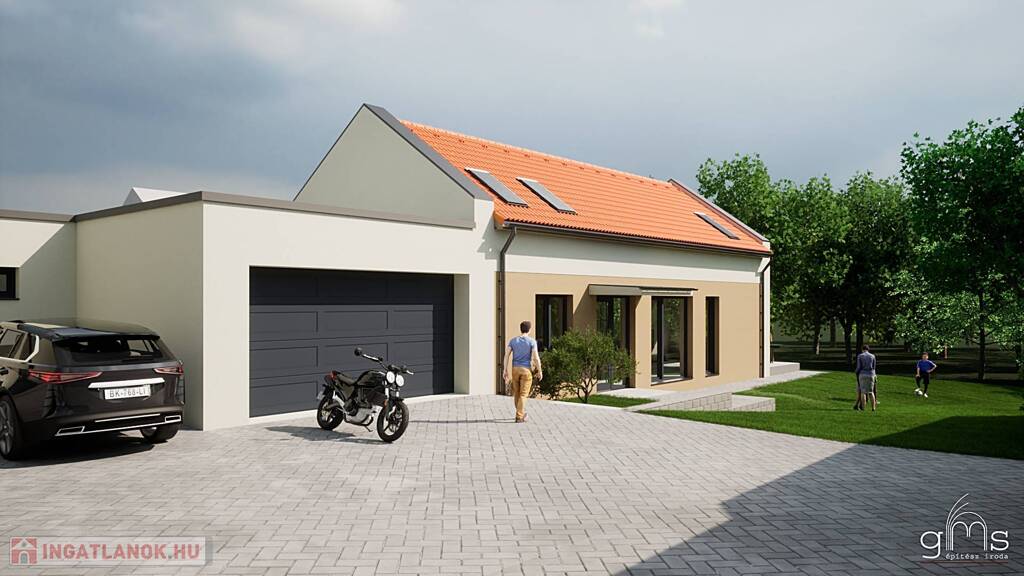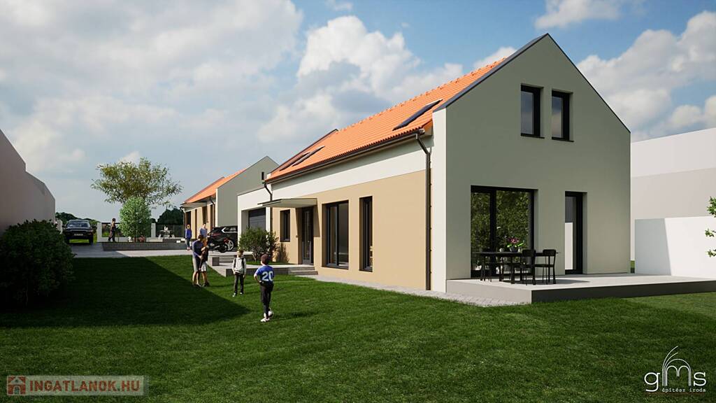 Győrújbaráton nappali+ 3 szobás, 2 szintes, dupla garázsos, energiatakarékos családi ház magas műszaki tartalommal eladó