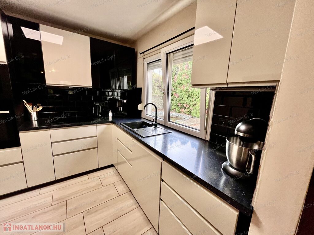 A konyhabútor 2 éve lett cserélve a mai modern ízlésvilágot tükrözi. Beépített mosogatógép,sütő, mikro, főzőlap,gránit mosogató és szagelszívó van a konyhabútorba elhelyezve.
