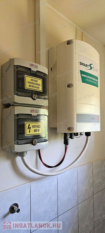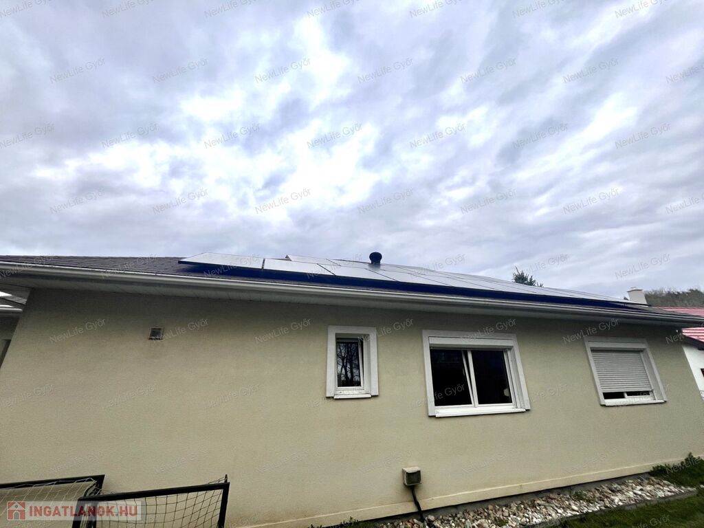 A ház rezsije nagyon kedvező, ez mind a szigetelésnek, mind a napelemnek köszönhető. A napelem 5,28kW teljesítményű, de még 8 egységgel bővíthető. A napelem 3 éve került fel a tetőre, 20 éves garanciával. Minden panel külön egységként működik.