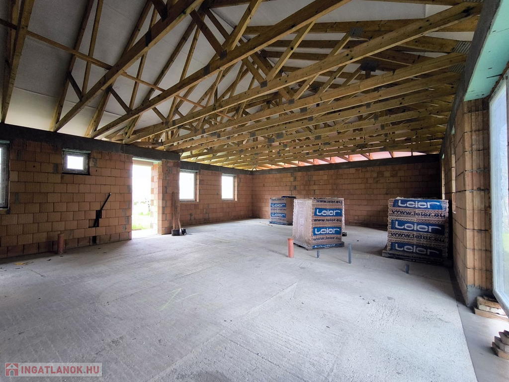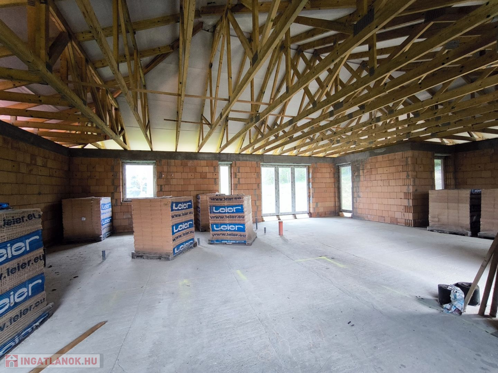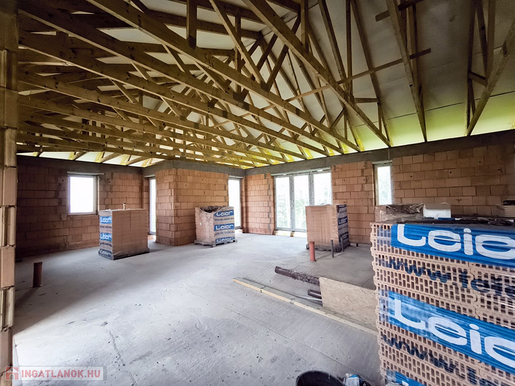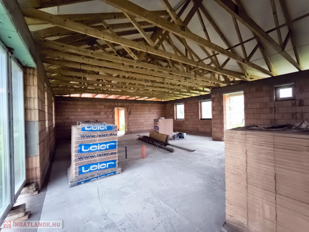 A ház már tető alatt van. A belső válaszfalak kialakításában figyelembe tudunk venni egyedi igényeket.