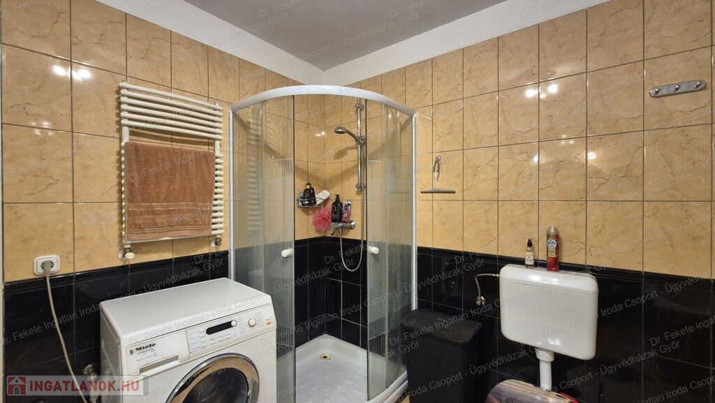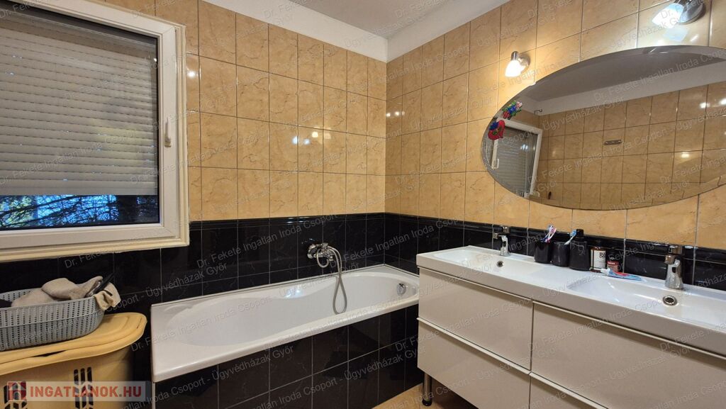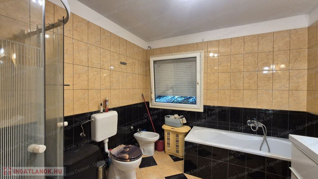 Fürdőben: kád, zuhanyzó, WC, bidé, törölközőszárítós radiátor, ablak