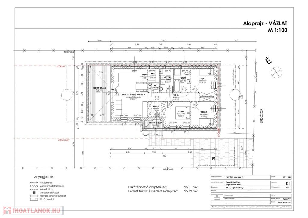 Az ingatlanhoz 23,22 m2 fedett terasz és 2,65 m2-es fedett bejárat tartozik.