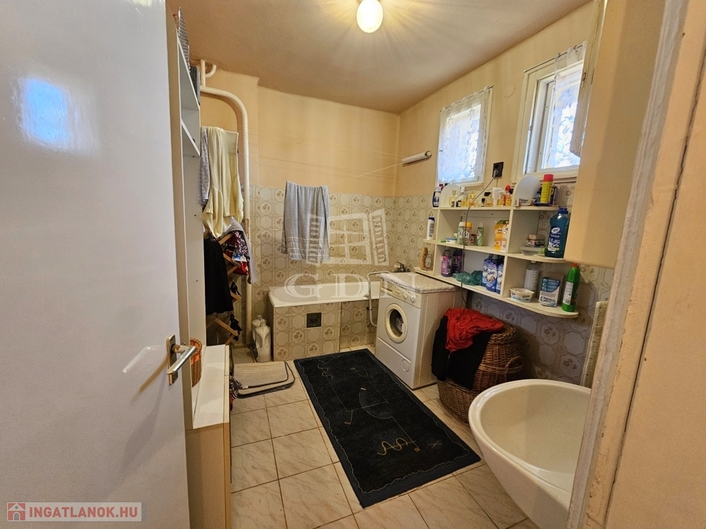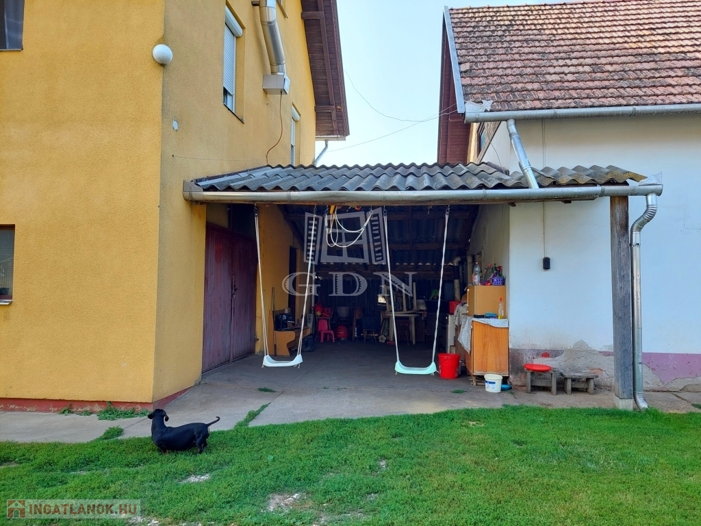 A kertes ház 1986-ban épült, beton alapzattal, részben tégla, részben szilikát falazattal. A tetőszerkezete jó állapotú nyeregtető, cserépfedéssel ellátva. A ház fűtése gázkazánnal és vegyes tüzelésű kazánnal megoldott radiátoros központi fűtés, továbbá több cserépkályha és klíma is rendelkezésre áll. Az épületben a földszinten 3 autónak is elegendő garázs kapott helyet, mely az utca frontjához képest ki van emelve, így nem folyik be a víz, mint a süllyesztett garázsoknál. A lakóépületnek több különálló bejárata van, két generációs házként is hasznosítható.