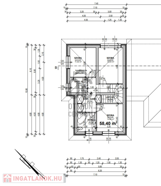 - Lakóterület: 57,3 illetve 58,4 m², két szintes kialakítás