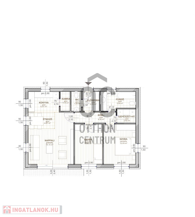- a belső elrendezés, helyiségkiosztás szabadon variálható