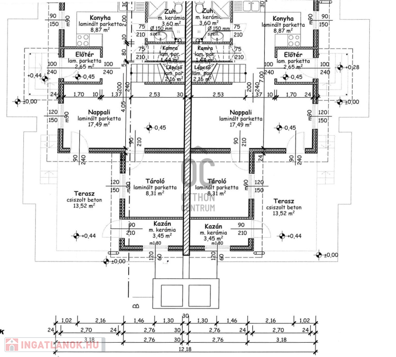 - alapterület 76 m2+3,45 m2 kazánház + 13,52 m2 terasz